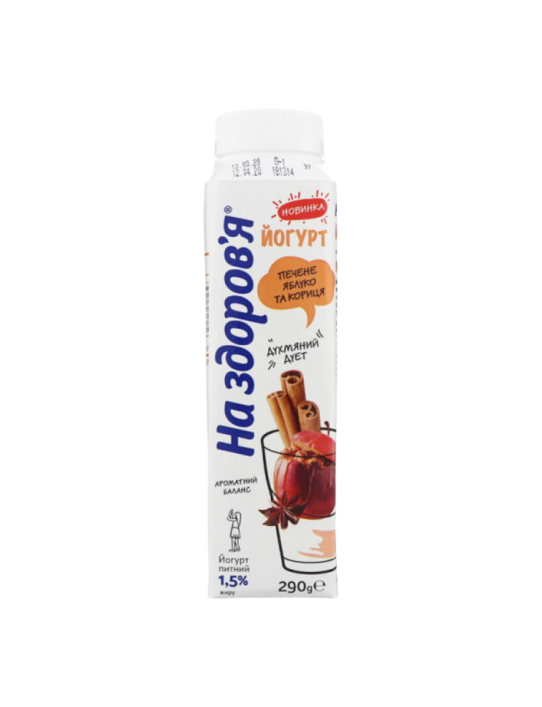 Йогурт На здоровя питний Печене яблуко-кориця 1,5% 290г ПЕТ