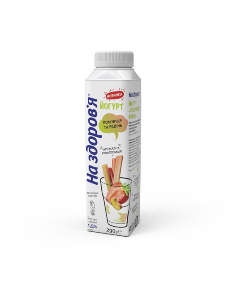 Йогурт На здоровя питний Полуниця-ревінь 1,5% 290г ПЕТ