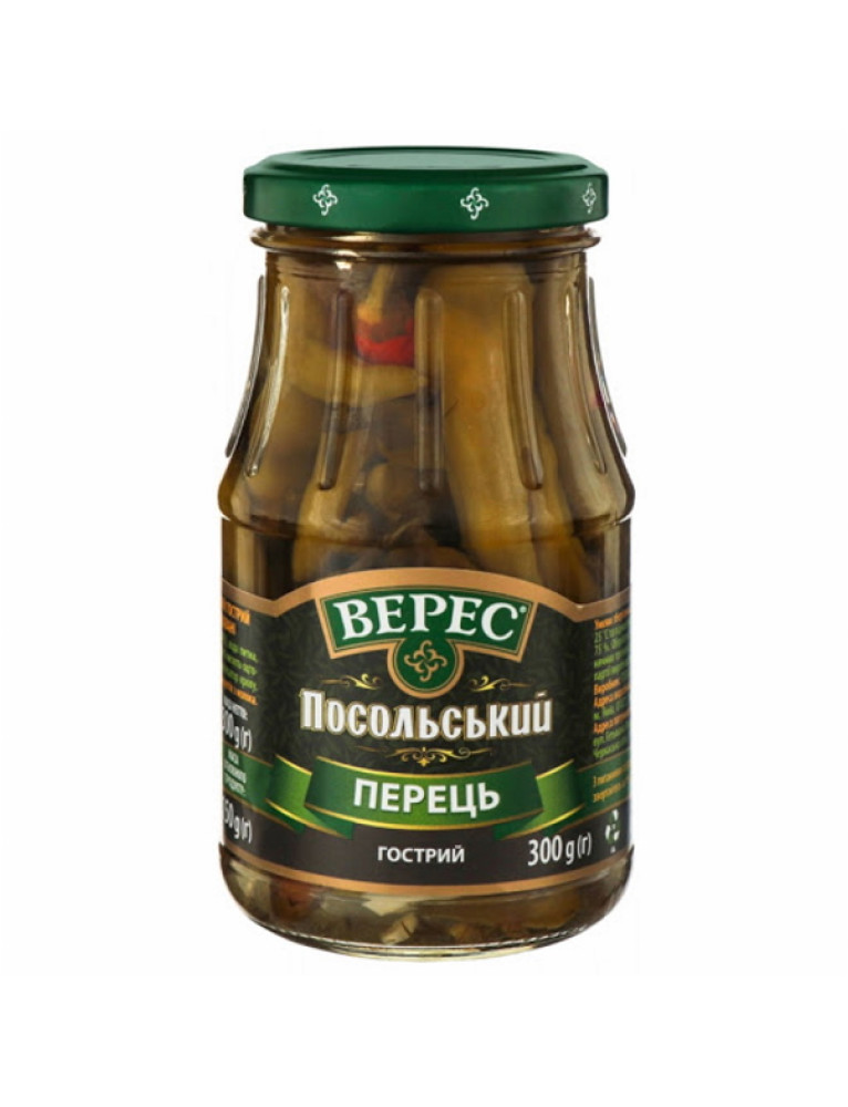 Перець стручковий гострий маринований Посольський 300г с/б Верес