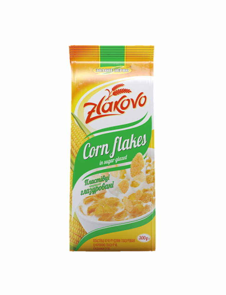 Пластівці кукурудзяні ЗЛАКОВО 300г глазуровані цукровою глазур'ю (Золоте зерно) пакет